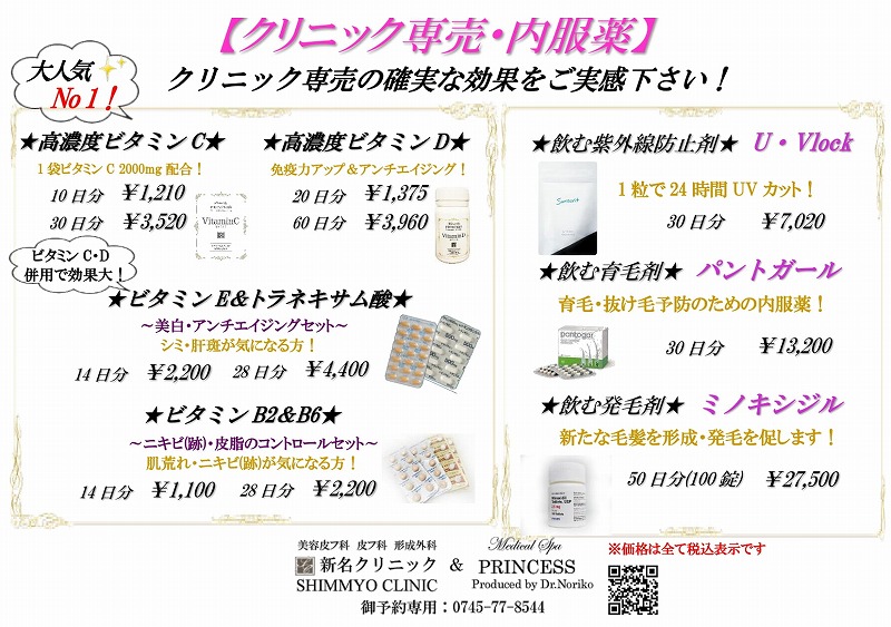②お化粧品、ビタミン剤、クリニック専用外用剤・内服薬のご購入金額で