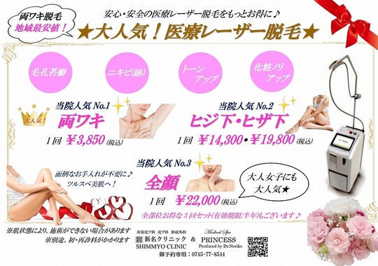 ★医療脱毛レーザー・360°隙のないお肌へ★