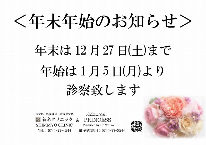 12/28(日)午後~1/4(日)までは休診とさせていただきます。